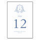 Diese traditionellen Monogram Wappen Blue Floral Elegant Wedding Tischnummer Karten verfügen über ein elegantes Vintages botanisches Monogramm Wappen mit zarten Weinreben und floralen Akzenten, mit einem barocken Chinoiserie Stil, der perfekt für Ihre Viktorianische inspirierte Luxus Hochzeitsempfehlung ist.