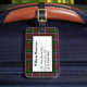 Stilvolle Gepäckmarke in traditionell grünem und tiefrotem Montrose kariertes Muster. Ein weißer Textbereich auf der Vorderseite enthält schwarzen Text, der mit Ihren Informationen personalisiert werden kann. Die perfekte Art, Ihr Gepäck zu sehen, und macht eine tolle Geschenkidee.