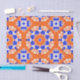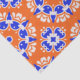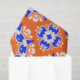 Lebhaftes Gewebepapier mit einem nahtlosen Muster aus geometrischen Formen in Orange, Blau und Weiß.