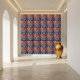 Die Kachel im Chinoiserie-Stil verbindet klassische Eleganz mit lebendiger Farbgebung und präsentiert eine wunderschöne, mehrstufige asiatische Pagode, Set gegen kräftige Rottöne mit blumenblauen Verzierungen. Ob in modernem Dekor oder in Vintagen Räumen, es bringt einen raffinierten, globalen Flair in jede Umgebung. Stiltipp: Pair mit Gold, Marine oder Naturholz für einen High-End Ost-Begegnungen-West Look.