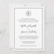 Einfache Einladung zum Hochzeitsfeiern mit dem Monogramm in einem Kreis oben und Ihren Hochzeitsdetails, umgeben von einer dünnen Grenze. Ihre Namen befinden sich in einem handgeschriebenen, eleganten Schriftart. Alle Designelemente sind schwarz und weiß und können im Entwurfsbearbeitungstool geändert werden. Das klassische, traditionelle Layout macht diese Einladung zu einer feierlichen Hochzeit.