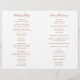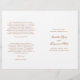 Klassisches Hochzeitsprogramm in Terrakotta mit Akzenten in eleganter Kalligraphie. Die Vorderseite hat Ihre Veranstaltungsdetails, die Innenseite hat Ihre Hochzeitsfeier und die Reihenfolge der Zeremonie. Die Rückseite hat eine Vorlage für Ihre Nachricht / Anführungszeichen. Der gesamte Text ist orange / rostfrei über einem weißen Hintergrund verbrannt und kann durch Anklicken des Buttons "Anpassen" in beliebige Farben geändert werden. Diese Hochzeitsprogramme sind perfekt für eine feierliche Hochzeit.