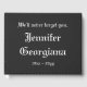 Dieses grundlegende Begräbnis oder Gästebuch enthält die Meldung "Wir werden dich nie vergessen", einen personalisierten Namen und ein Geburts-/Sterbedatum. Es könnte genutzt werden, um wohlwollende Wünsche für die Verwandten und Freunde von jemandem zu erfassen, der vor kurzem verstorben ist.