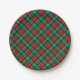 PapierTeller mit einem traditionelles Weihnachtskarierten Muster im hellen Rot und im seafoam grünt, mit schwarzen Akzenten. Wählen Sie von zwei Größen.