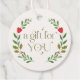 Eleganter Weihnachtsaufkleber mit heiligen Kranz "ein Geschenk für dich" zentriert.