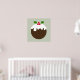 Eine moderne Weihnachtsbilderin mit einem einfachen Bild eines traditionellen Weihnachtspudding mit weißem Eis, heiligen Blätter und Beeren. Der Hintergrund ist weich grün, aber man kann ihn auf alles ändern, was man will.