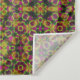 Ein lebendiges kaleidoskopisches Muster weist symmetrische Designs mit hellen Farbtönen wie Rosa, Grün und Gelb auf. Die komplizierte Anordnung schafft ein visuell faszinierendes Mosaik, das an Buntglas oder psychedelische Tapisserie erinnert.