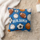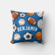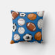 Ein blaues Wurfskissen, das eine Zusammenstellung der Sportbälle und eine Stelle für den Namen Ihrer Geschenkempfängers kennzeichnet, zentrierte innerhalb sie.