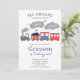 Jegliche Einladung zum Geburtstag eines Jahrgangs. Personalisieren Sie die bearbeitbaren Informationen für Ihre Feier. Ideal für ein Zugthema. Enthält einen niedlichen, rot-blauen Zug, der Text ist bearbeitbar.