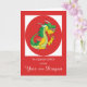 Wünschen Sie sich ein glückliches chinesisches Neujahr, während wir in das chinesische Jahr des Drachen. Ein grüner und gelber Drache sitzt auf der Vorderseite dieser roten Karte.