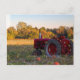 Traktor links in einem Kürbisfeld während der Erntezeit.