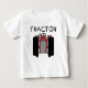 Ein roter Traktor und ein Kind reden schwarzen Text an, der 'TRAKTOR" auf TRAKTOR T - Shirts, Bodysuits, Tassen, Karten, Aufkleber, Taschentaschen und anderes Traktorkleid und -geschenke liest.