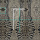 Das Muster auf diesem Gewebe kommt von einem Foto der Bahnen, die durch einen Traktor gemacht werden, der hinunter eine SchmutzLandstraße fährt. Die Reifeneindrücke bilden Zickzackstreifen und wavey Linien in diesem Tan farbigen Gewebe.