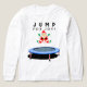 Fun Christmas holiday shirt featuring Mrs. Claus jumping on trampoline.