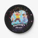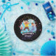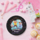 Heller Glittersterntrampolinegeburtstags-Party-Papier-Teller für die mehrfarbigen, silbernen, lila und rosa Glitterblicksterne des Jungen- oder Mädchengeburtstages zerstreute alle herum. Spaßzeichnen des glücklichem Kinderspringens. Gebogener, personalisierter Name und "Geburtstag" in den funky Artbuchstaben unten. Feste schwarze Hintergrundfarbe, die zum Anzug geändert werden kann Ihre Geburtstags-Partyfarben oder spezielles Ereignis. Spaßsternsprungsgeburtstags-Gastgeschenkaufkleber. Anmerkung: Alle Bilder werden gedruckt. Nicht tatsächlicher Glitter. Wir haben mehr Schlaghaus-Partydekor und große Luftgeburtstags-Partyversorgungen in unserem Zazzle.com/angela65*-Geschäft, einschließlich zusammenpassende Trampolinegeburtstags-Party Einladungen und Sprungs-Gastgeschenkaufkleber. Klicken fertigt Wahl zu den Änderungstextfarben, zur Größe und zu den Schriftartarten besonders an, um Ihren KinderPartydekor zusammenzubringen.