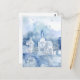 Immerse yourself in the serenity of this dreamy blue-toned village landscape, where watercolor textures and soft details evoke a calm, boho-inspired escape. Birds soar above a peaceful countryside scene, blending architectural charm with nature’s quiet magic.