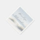 This wedding napkin features a serene beach scene with soft, muted colors that create a tranquil atmosphere. The design includes gentle waves and tall grasses framing the elegant cursive typography, which adds a romantic touch to the minimalist layout. Perfect for a coastal-themed celebration, this napkin combines pastel tones of light blue, sandy white, and pale green to evoke feelings of peace and relaxation. Its stylish and modern aesthetic makes it an ideal choice for couples looking to add a sophisticated yet calming vibe to their special day.