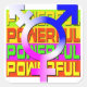 Trans Pride POWERFUL auf farbenfrohen Bannern