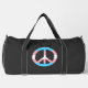 Duffle Bag with peace symbol design in colors of transgender flag pride flag, rainbow stripes pride flag