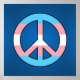 Poster mit Friedenssymboldesign in den Farben der transgender Fahne-Flagge mit Regenbogenstreifen auf blauem Hintergrund