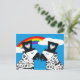 Das ist ein niedliches Paar, das transgender und homosexuell ist. Sie sind auch Papageien. Regenbogen, blauer Himmel und einige Wolken im Hintergrund.