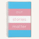 Dieses Design zeichnet sich durch die überragenden Fahnenfarben Weiß, Blau und Rosa aus. Auf der Vorderseite steht der Slogan "Unsere Geschichten sind wichtig". Auf der Rückseite ist ein Abschnitt "Worte der Weisheit", in dem Sie Notizen schreiben können, während Sie lesen. Sie können jedes Element dieses Designs in Zazzle anpassen, von Text bis Farben. ⭐ von Jessica Amber erschaffen. ⭐ Für mehr Stolz Schreibwaren besuchen Sie mein Geschäft zazzle.com/jessicaamberartist ⭐ Für benutzerdefinierte Bestellungen, schreiben Sie mir auf Zazzle