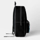 Backpack with text in the colors of the transgender pride flag. Pink, white, and blue flag of the trans pride movement, on a blue background