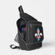 Schultasche mit fleur-de-lis (fleur-de-lys oder Lilienblume) Symbol mit Regenbogenstreifen in Rosa, Blau und Weiß von der Transgender-Flagge; Trans-Stolz-Design