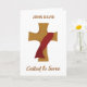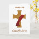 Feiern Sie und wünschen Sie einem neuen Transitional Deacon herzlichen Glückwunsch. Sende dem Diakonaten Segen über seine Ordination mit diesem einfachen und heiligen, braunen Kreuz, das mit einem roten Stolz, dem Symbol und der Kleidung, nachdem er ordiniert wird, drapiert ist. Personalisieren Sie es mit seinem Namen für eine wertvolle Sake-Karte, die an diesen besonderen Tag erinnert.