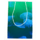 Atmosphärische Fotografie der transparenten Quallenschwimmens in einem blauen/grünen Meer.