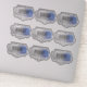 Transparente Sojakandellabellen mit einem blauen Silberbrush-Farbthema. 2,3 Zoll breit.