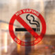Dieses 5 x 5 transparente, rauchfreie Klappschild für Schaufenster im Schaufenster. Bild und Text können nicht angepasst werden.