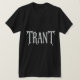 Minimale Front mit "Trant" in fett, kontrastiert durch ein abstraktes Design und kryptischen Text auf der Rückseite - gemacht für diejenigen, die mysteriös und Rand mit Stil tragen.