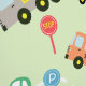 Niedliche und lustige Fahrzeuge und Schilder Muster-Design.