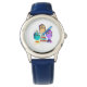 Kinderuhr aus Edelstahl mit blauem Lederarmband
