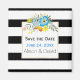 Schöne Hochzeit Save the Date Magnet mit schönen aquablauen und gelben Folklore-Blume und schwarz-weiß Streifen. Eine großartige Wahl für eine Hochzeit im Frühling oder Sommer.