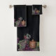 Dieses Set aus schwarzem Set mit Badehandtuch ist ein Wein, Trauben und Kerzen-Thema Druck und mit anderen Dekorationen könnte eine sehr gut koordinierte und stilvolle Toilette.