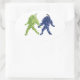 Traubenfreunde Aufkleber. Ein Paar Traubenbäume, eine grüne und eine lila, gehen zusammen Hand in Hand. Der Stamm des grünen Hundes scheint auf den lila Haufen zu schauen. Der lila Traubenstamm gibt den Blick eifrig zurück. Diese Darstellung schafft eine skurrile Szene mit den menschlichen Eigenschaften von Freundschaft, Liebe, Güte und Toleranz, während ihre aufspringenden Schritte sie gemeinsam voranbringen.