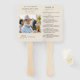 Gedruckter Trauerfächer mit einem personalisierten Foto auf der Vorderseite und einem klar strukturierten Ablauf der Trauerfeier auf der Rückseite, konzipiert für Trauerfeiern im Freien, Sommerbegräbnisse und Lebensfeiern. Dieser Gedenk-Handfächer bietet eine praktische und sinnvolle Möglichkeit für die Trauergäste, der Zeremonie zu folgen und sich während der Versammlung bei warmem Wetter wohlzufühlen. Das doppelseitige Design enthält ein einzelnes Foto auf der Vorderseite und einen leicht lesbaren Ablauf der Trauerfeier auf der Rückseite, der die Abfolge der Ereignisse in einem sauberen und organisierten Format präsentiert. Das Layout ist für eine klare Übersicht konzipiert, was es ideal für Trauerfeiern im Freien, Grabfeiern und größere Gedenkveranstaltungen macht, bei denen die Gäste von einem einfachen und funktionalen Programm profitieren. Perfekt für Lebensfeiern, Trauerzeremonien und Gedenkveranstaltungen, kombiniert dieses gedruckte Trauerfächer-Programm Benutzerfreundlichkeit und durchdachtes
