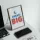"Dream Big" ist eine motivierend Wandkunst, die an Ihrem Zuhause-Büro hängt. Es ist ein inspirierendes Zitat mit modernem Design. Es kann als physisches Plakat oder als digitaler Download in hochauflösender Datei erworben werden, um es selbst zu drucken.
