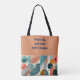Dieses Taschendesign ist besonders, weil es ein modernes geometrisches Muster mit einer lebendigen und dennoch ausgewogenen Farbpalette aus aquamarin, orange und mariniert kombiniert. Der gedämpfte orangefarbene Hintergrund verleiht Wärme und ergänzt die fett geformten Formen, während das motivierend Zitat aus der Marine Kontrast und Inspiration schafft. Seine saubere, künstlerische Ästhetik macht es sowohl stilvoll als auch aussagekräftig, perfekt für diejenigen, die Kreativität und Positivität in ihren Alltagsgegenständen schätzen.