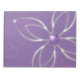 Vor einem abstrakten Kaleidoskop-Hintergrund weicher Apophyse-Fraktale ist eine vierblättrige Blume silberner Filigree mit einem funkelnden Amethyst in der Mitte und kleinen runden Edelsteinen in den Ecken. Eine Illustration, die lila als Symbol für Königtum und Reichtum verwendet.