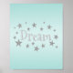 Dieser bezaubernde Druck verfügt über einen Aquahintergrund mit "Dream" und Sternen mit digitalem silbernen Glitzer (Glitzer ist ein Bild, es gibt keinen Glitzer auf dem Produkt. Die Coordination von Drucken und anderen Farben finden Sie in unserer Baby to Teen Prints Collection oder in der Sektion Kinderdekoration.