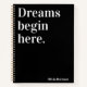 Träume beginnen hier | Modernes Schwarz Notizbuch