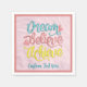Genießen Sie Ihre Feier und Party-Dekoration mit personalisierten Party-Servietten nach Maß. Traum glauben, erreichen inspirierende Motivierend Personalisierte Papier Napkins. Personalisieren Sie Ihre Daten mit Namen, Ereignis, Nachricht oder Zitat. Fügt jedem Party oder besondere Anlass Spaß hinzu. Tolle Geschenkidee für Party.