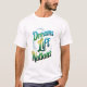 Der T - Shirt enthält den fett gedruckten Text "Dreams Lift Nations" in einem dynamischen, aufregenden Schriftart. Die Phrase ist wahrscheinlich auf der Brust zentriert und könnte von einem subtilen Hintergrund oder einem grafischen Element begleitet sein, das Einheit, Wachstum oder Bestreben symbolisiert. Das Gesamtdesign zielt darauf ab, inspirieren und zu stärken, indem es eine Botschaft des kollektiven Potenzials und des transformativen Powers von Träumen vermittelt.