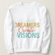 Dieses T - Shirt-Design zeigt die inspirierend Meldung "Dreamers Create Visions" in einem mehrfarbigen Schema. Jedes Wort ist eine andere lebendige Farbe, die die Kreativität und Vorstellungskraft unterstreicht, die Innovation antreiben