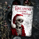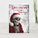 Träumen von einer gotischen Weihnachtskarte. © Dunkles Herz Wünsche. Diese gotische Weihnachtskarte hat ein Skelett mit einer Weihnachtsmannmütze und Jacke und die Worte Träumen von einem gotischen Weihnachtsfest darauf. Diese Karte ist innen leer, damit Sie Ihre eigene Nachricht hinzufügen können.