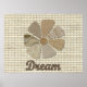 Träumen Sie und folgen Sie Ihren Träumen und Sie werden Erfolg haben. Diese inspirierende Collage ist in neutralen Tönen von Bräunen, Beige und Elfenbeingewebe mit dem Wort "Traum"