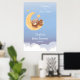 Träumender Teddybär Mond Sanft Blau Baby Shower Poster